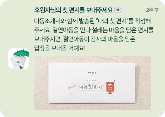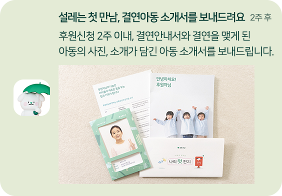 어린이가 행복하고 건강하게 자라날 수 있도록 여러분의 첫 편지로 국내아동결연에 함께해주세요