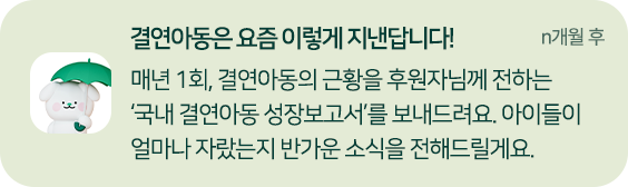 후원자님의 변동사항에 따라 아이들이 받는 후원금이